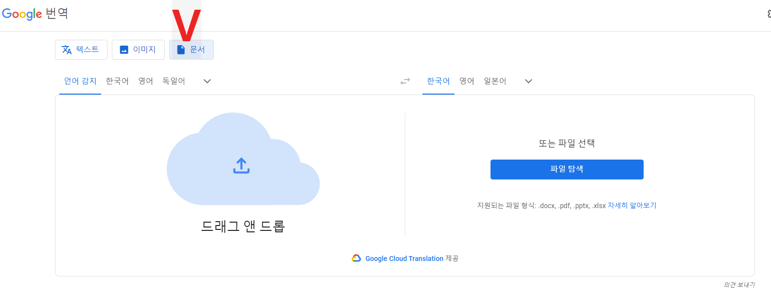 구글 번역기를 들어가서 문서를 클릭하고 다운로드한 파일을 번역한다.